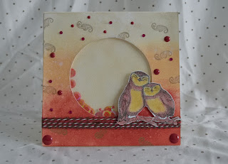 The card I made some time ago for my cousin's birthday. I used the same stencil again. This time I mixed the texture paste with Distress Inks before I applied it to paper. I used Fired Brick and Shabby Shutters inks.